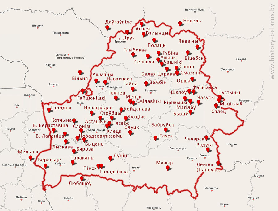Геаграфічныя межы вiзуалiзаваных аб'ектаў не вызначаюцца выключна межамi сучаснай тэрыторыі Беларусі. Геаграфiчныя рамкi пашыраны да тэрыторый ў межах былых ваяводств Вялiкага Княства Лiтоўскага ў Рэчы Паспалiтай.