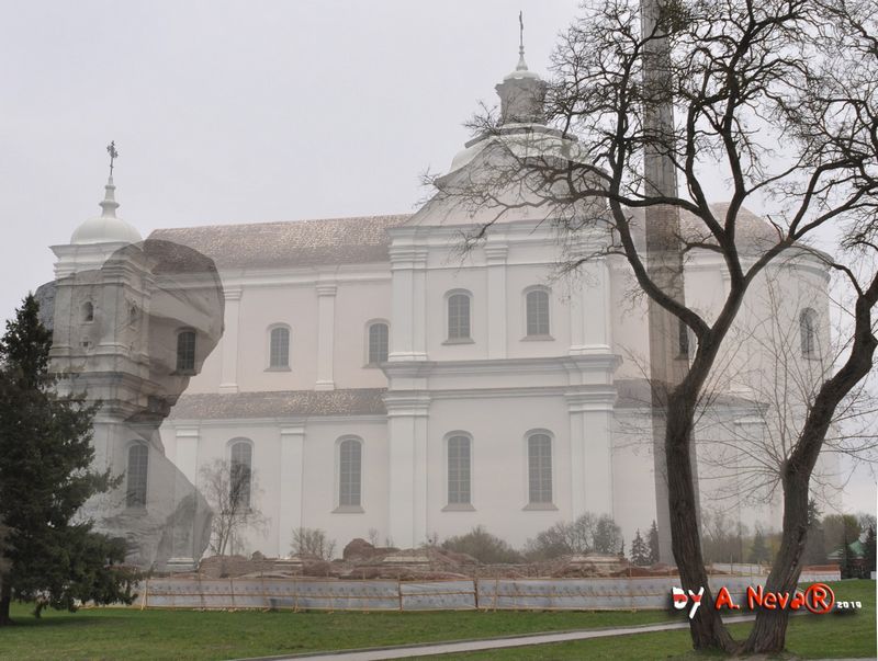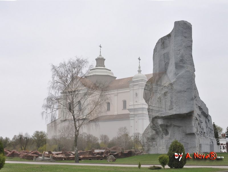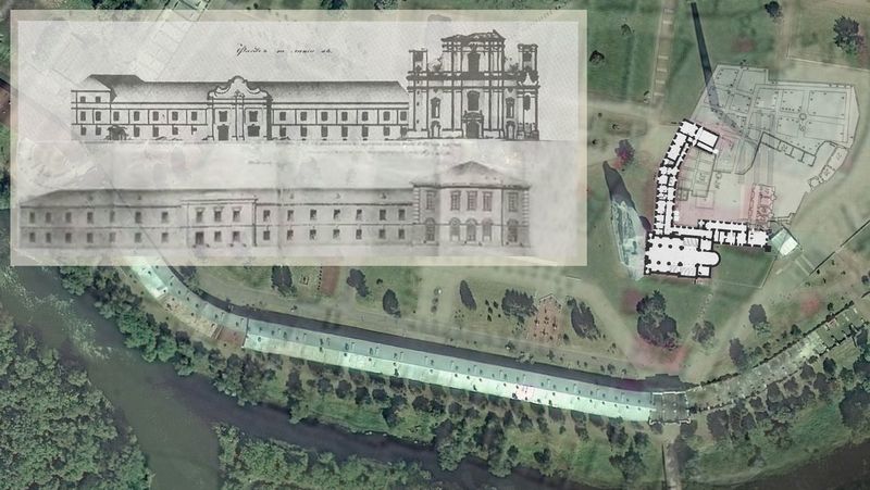Берасце. Графiчная рэканструкцыя касцела Пана Езуса і Святога Казіміра калегii езуiтаў. Гiпатэтычны выгляд на перыяд сярэдзiны XVIIIст.