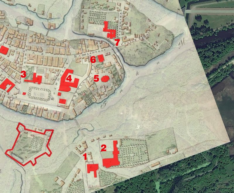 Графiчныя рэканструкцыi зроблены на падставе захаваўшыхся архiўных дакументаў (абмерныя чарцяжы, планы, схемы, праекцыi ў супастаўленнi з захаваўшымiся старымi фотаздымкамi i iншымi выявамi (малюнкамi Томаша Макоўскага, Юзафа Пешкi, Напалеона Орды i iнш.).