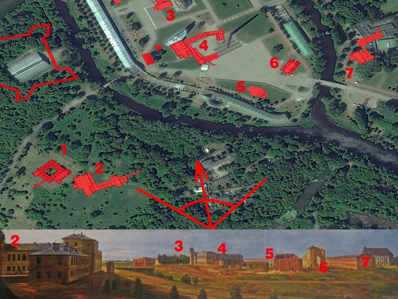 Графiчныя рэканструкцыi зроблены на падставе захаваўшыхся архiўных дакументаў (абмерныя чарцяжы, планы, схемы, праекцыi ў супастаўленнi з захаваўшымiся старымi фотаздымкамi i iншымi выявамi (малюнкамi Томаша Макоўскага, Юзафа Пешкi, Напалеона Орды i iнш.).