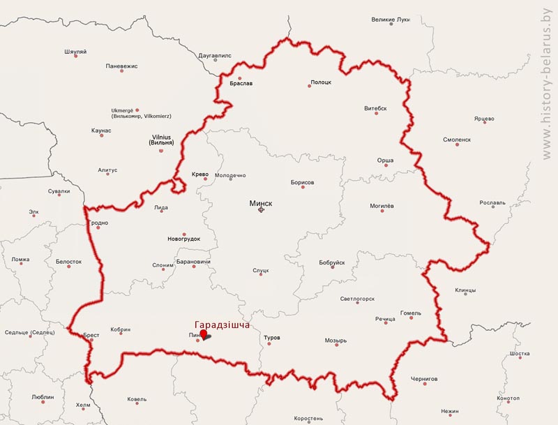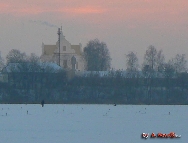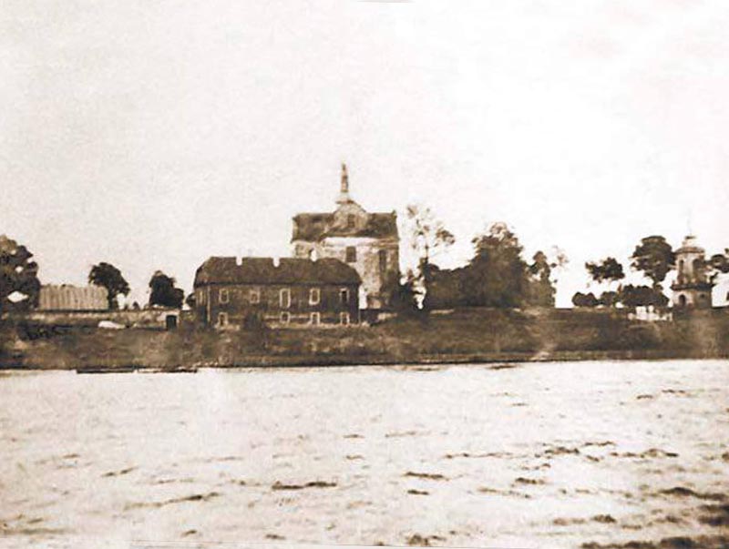 Гарадзiшча (Пiнскi раён). Графiчная рэканструкцыя былога касцёла Св. Ганны кляштару айцоў бенедыктынаў*. (*Бенедыктыны — мніхі найстарэйшага ў Эўропе каталіцкага манаскага ордэна святога Бенедыкта. Заснаваны ў 530 г. Бенедыктам Нурсійскім)