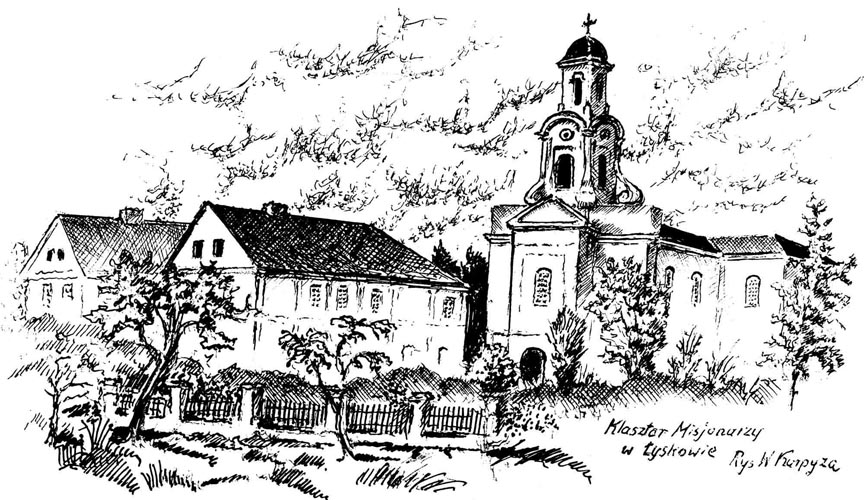 Лыскава (Пружанскi раён). Графiчная рэканструкцыя касцёла св. Тройцы кляштара мiсiянераў.