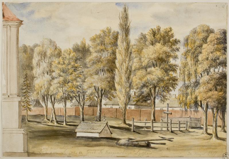 Таксама трэба згадаць, што на тэрыторыі былога кляштара, побач з касцёлам, захавалася магіла Францішка Карпінскага (1741-1825) — знакамітага паэта і драматурга. Апошнія гады ягонага жыцьця прайшлі ва ўласным маёнтку побач з Лыскавам. У Траецкім касцеле знаходзіўся сямейны склеп роду Быхаўцаў, што запрасiлi мiсiянераў у Лыскаў.