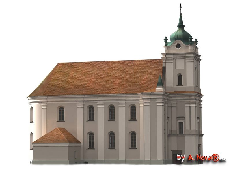 Графiчная рэканструкцыя касцёла Нараджэння Панны Марыi, Св. Антонiя i Казiмiра кляштару бернардынак у Гораднi. Выгляд да перабудовы на царкву ў другой палове XIXст.