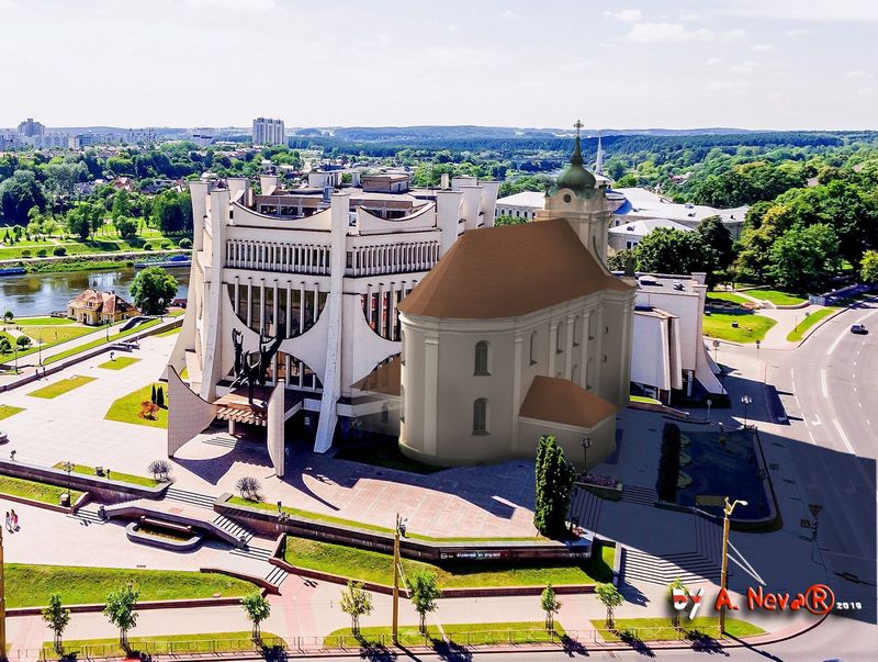 У 1977-1984 гг. на месцы кляштара пабудаваны Гарадзенскі абласны драматычны тэатр, якi часткова месцiцца i на месцы касцёла...