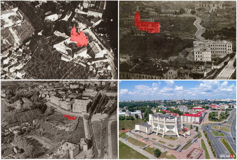На фота 1968г. усе пабудовы былога кляштарнага комплекса бернардынак цалкам разабраны да падмуркаў а пляцоўка падрыхтавана пад забудову, згодна з ўяўленнямi аб прыгажосцi будаўнiкоў сацыялiзму i актуальнымi патрэбамi новага генплана развiцця горада.