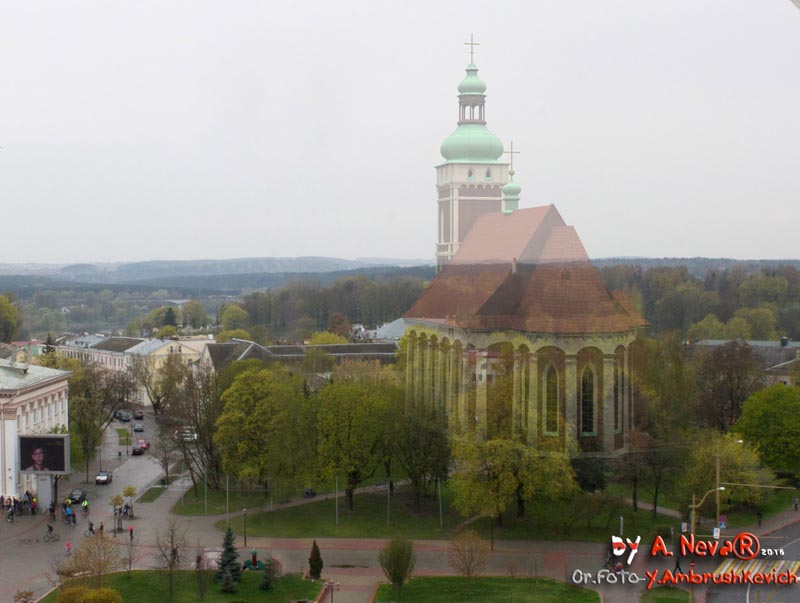 Шматсхільны дах гранёнай алтарнай часткі быў крыху ніжэйшы за асноўны, у выніку чаго вышынная дынаміка аб’ёма нарастала ад алтара да магутнай шмат’яруснай вежы (з фігурным завяршэннем), якая дамінавала ў кампазіцыі і стварала звыклы для таго часу сілуэт святыні. Падобны готыка-рэнесансны тып культавага будынка быў распаўсюджаны ў ХVІ ст. у дойлідстве не толькі у ВКЛ, але i Польшчы, Чэхіі і шэрагу іншых краін Цэнтральнай Еўропы.