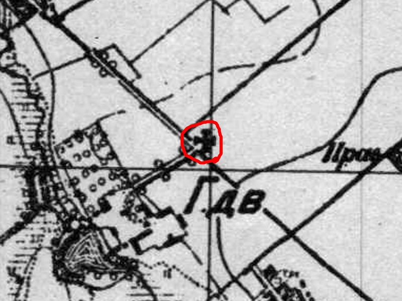 Котчына (Мастоўскi раён). Графiчная рэканструкцыя былога касцёла дамiнканцаў. Выгляд на пачатак XX ст.