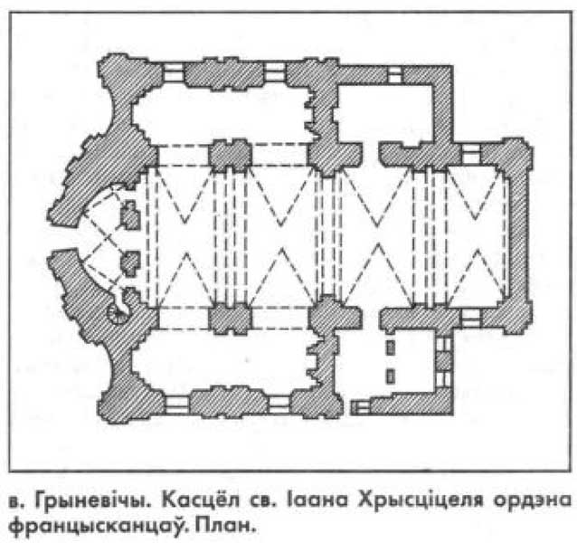 Лапенiца Вялiкая (пасля 194 вёска Грыневiчы, Свiслацкага раёна). Гiпатэтычная графiчная рэканструкцыя былога касцёла Iаана Хрысцiцеля пры кляштары францысканцаў.