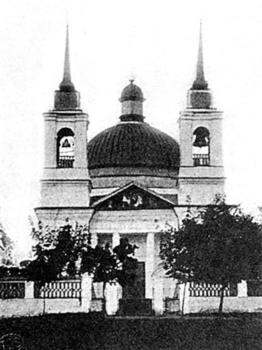 Поют в церкви любители церковного пения с мальчиками школьными хорошо. Прихожан обоего пола 3227 душ; приход состоит из крестьян, мещан, купцов и частию военных лиц. Деревни некоторые отстоят от церкви в 5, 7 и 10 верстах. Причт двухчленный с годовым жалованьем в 644 руб. Земли при церкви 36 десятин; план на землю имеется. Помещения для членов причта общественныя, но ветхия. Там имеются 4 церковно-приходские школы грамоты; в них учится 81 чел. Есть церковно-приходское попечительство. Документы в порядке... "