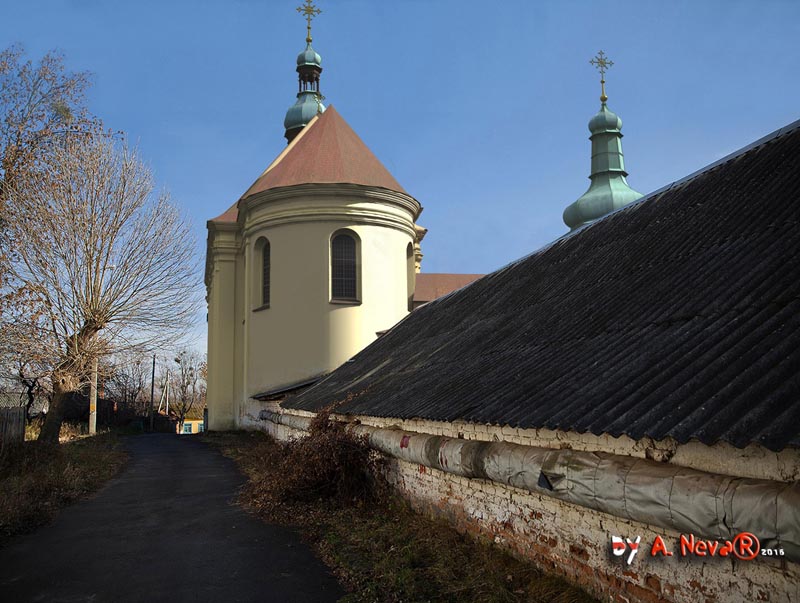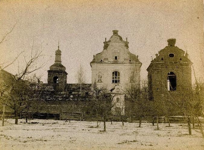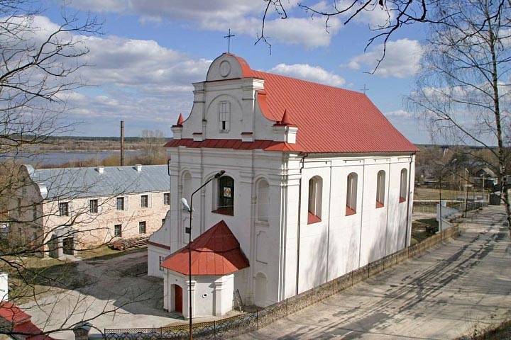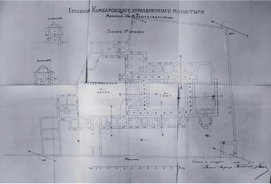 Мазыр. Графiчная рэканструкцыя цыстэрыянскага кляштара і касцёла Унебаўзяцця Панны Марыі на перыяд пачатку мiнулага стагоддзя, калi касцёл ужо пераабсталяваны пад праваслаўную царкву царскімі ўладамі.