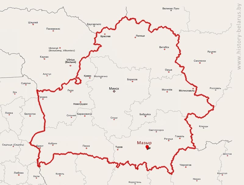 Першы пісьмовы ўпамін пра Мазыр датуецца 1155 г., калі ён перайшоў ад Кіеўскага да Чарнігаўскага княства. Працяглы час Мазыр знаходзіўся ў складзе Тураўскага княства, князі і епіскапы якога называліся тураўскімі і мазырскімі. З сярэдзiны XIV ст. Мазыр далучыўся да Вялікага Княства Літоўскага.