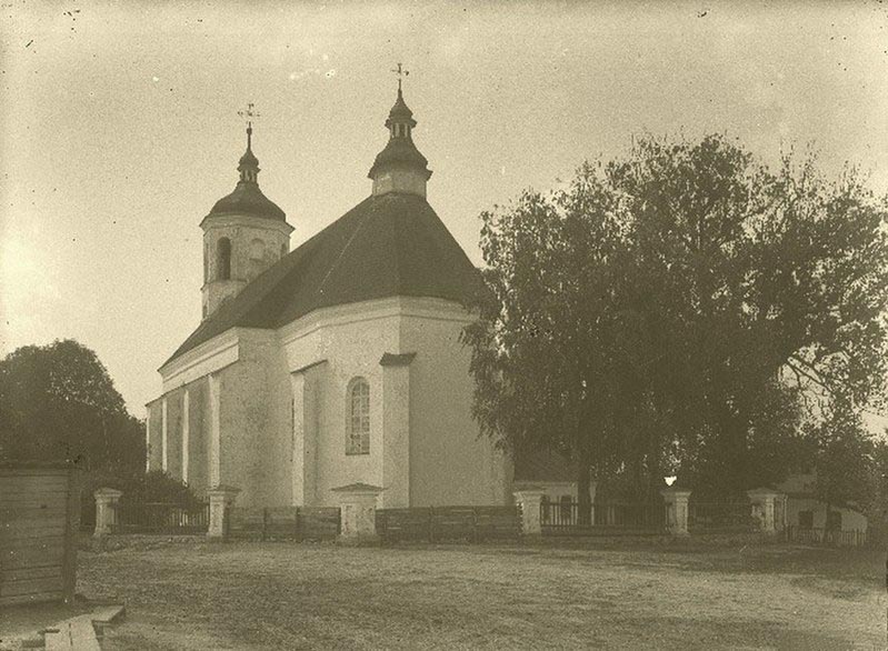 Згодна з iнвентарнымi "Апiсаннямi стану плебанii клецкай губернii Менскай" за 1796 год, мураваны храм закладзены каля 1450 "коштам Андрэя Маствiловiча, абывацеля наваградскага, адбудаваны накладам каралевы Боны, уладальнiцы Клецка, кансекраваны кiм i калi невядома".