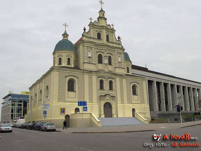 Першая фундацыя кляштара дамініканцаў у Мінску звязана з імем жонкі ваяводы вяндэнскага (Латвія) Крыштофа Слушкі — Зоф'і, што была з роду менскіх стараст і ваявод Завішаў. Гісторыя будаўніцтва касцёла насычана шматлікімі датамі і дадзенымі, якія з цяжкасцю складаюцца ў паслядоўную схему.