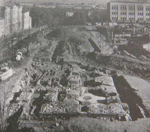 У 1985 на Кастрычніцкай плошчы пачалі будаваць Палац Рэспублікі, а ў 1986 годзе археолагі адкапалі падмуркі былога дамініканскага касцёла, якiя месцамі дасягалі 3-метровай таўшчыні. На фасадах былi выяўлены байніцы ніжняга бою, прыстасаваныя для страляніны з мушкетаў. Падмуркi касцёла былi закансерваваны да лепшых часоу, а падмуркi кляштара, нажаль, знiклi пад будынкам Палаца.