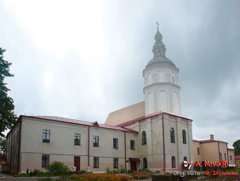 Нясвiж. Графiчная рэканструкцыя касцёла Св. Яўхiмii кляштару бенедыктынак. Выгляд пасля рэканструкцыi першай паловы XVIIIст.