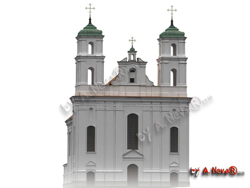 Cмiлавiчы (Чэрвеньскi раён). Графiчная рэканструкцыя касцёла св. Вінцэнта былога кляштара мiсiянераў.