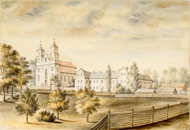 Заснавальнiца кляштарнага комплексу Марцыбела Завішанка з Агінскіх, асадзiла айцоў з аб'яднання ксяндзоў місіянераў у 1747г. першапачаткова пры драўляным касцёле.