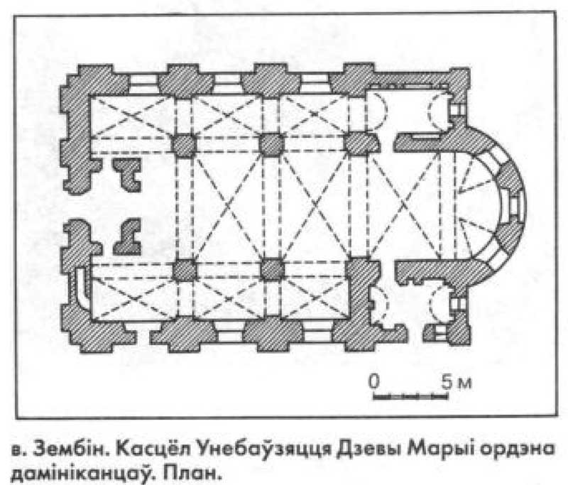 За 1640 ў Зембiне быў заснаваны кляштар ордэна дамініканаў. Фундатарамi былi ўладальнікi мястэчка — падкаморы ашмянскi Адам Саковіч і яго жонка Мар'яна (Marcjanna), народжаная Тышкевіч. Манахам быў аддадзены драўляны Касцёл Унебаўзяцця Найсвяцейшай Панны Марыі, збудаваны ў 1609-м.