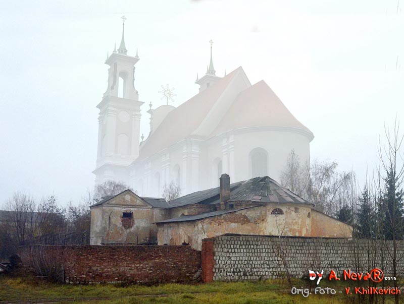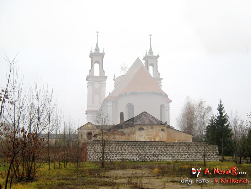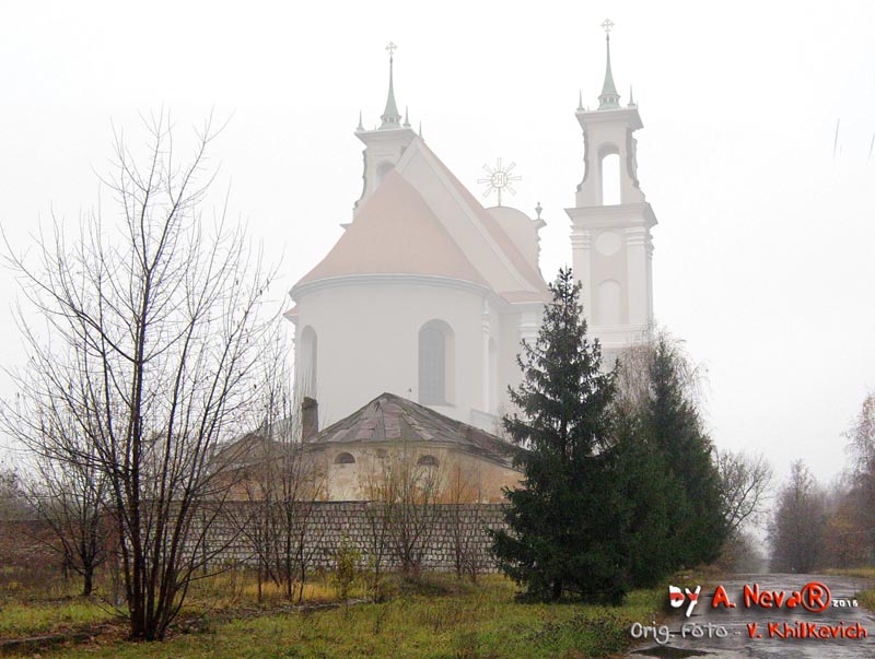 У 1732г. (па другiх звестках 1735г.) — пачатак будаўнiцтва мураванага храма, фундаванага на сродкі рэчыцкага суддзі Францішка Дзерналовіча (Franciszka Dernalowicza). Будаўніцтва святыні вялося пад кіраўніцтвам архітэктараў езуітаў Казіміра Мацелякоўскага — у 1735-36 гг. і Томаша Жаброўскага (T. Zebrowskiego) — у 1745-46 гг.