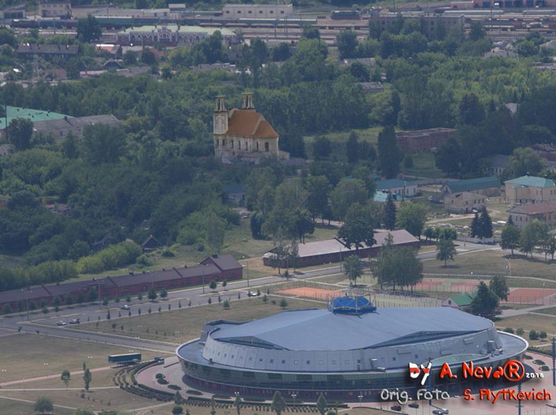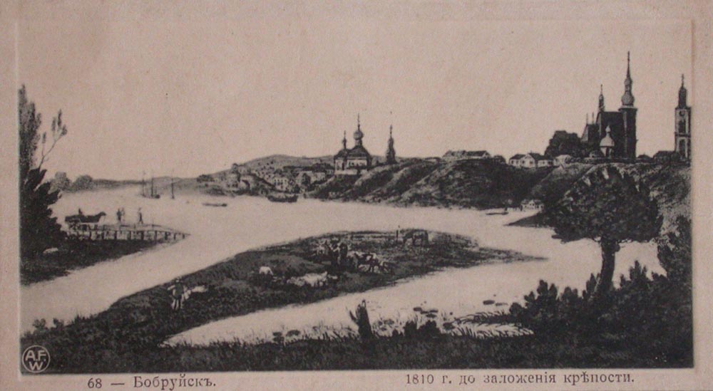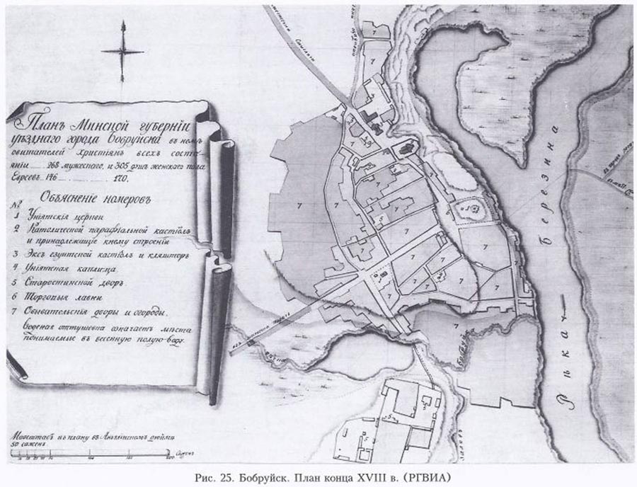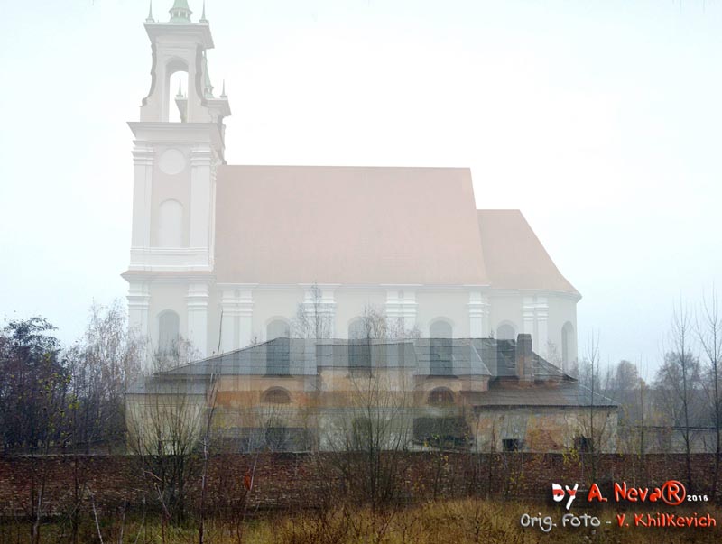 Бабруйск. Графiчная рэканструкцыя былога езуiцкага касцёла. Езуiтаў асадзiў у Бабруйску стараста П. Трызна ў 1623г. пры фарным касцёле. З 1630г. дзейнiчае бабруйская езуiзкая рэзiдэнцыя з калегiяй, пабудаваны новы драўляны храм. Была спалена падчас падзей вайны 1648-1651гг. казакамi. Толькi у 1681г. аднаўляецца рэзiдэнцыя, адбудоуваецца кляштар i дзейнiчаюць класы граматыкi "нiжэйшай школы".