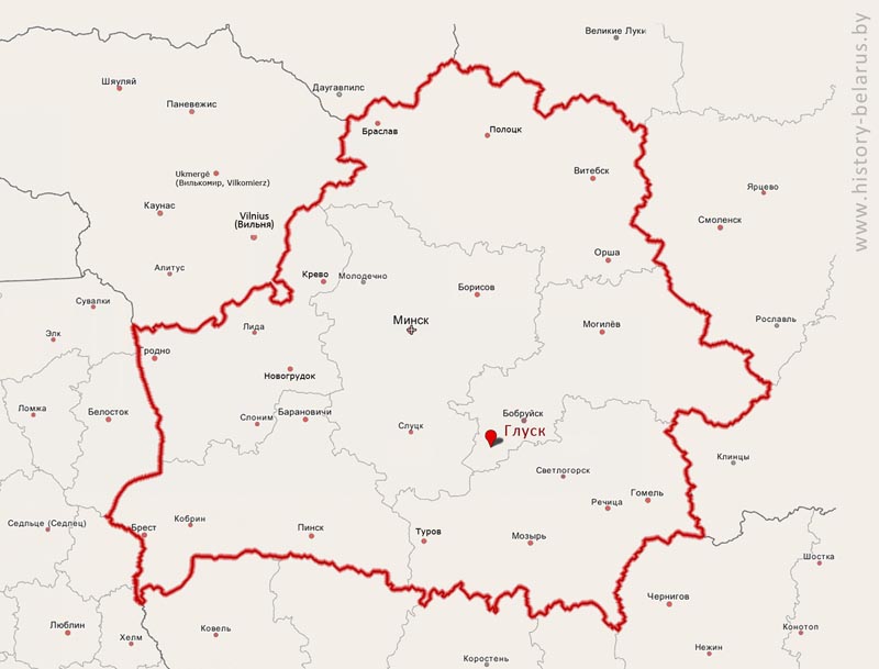 Глуск (Глуск Пагарэлы, зараз в.Гарадок) згадваецца ў пiсьмовых крынiцах XIV-XV ст. як вотчына старажытнага княжацкага роду Гальшанскiх. Пра час пабудовы замка i заснавання Глуска-Дубровiцкага сведчыць каралеўскi прывiлей ад 20 снежня 1522 г.