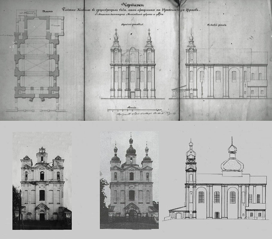 Да 1872 завяршылася рэканструкцыя колішняга касцёла з надбудовай трэцяй вежы замест франтона на галоўным фасадзе i дабудовай несапраўднага драўлянага купала. Форма купалоў таксама змянiлася большымi па памеру i форме аб'ёмамi цыбулiн.