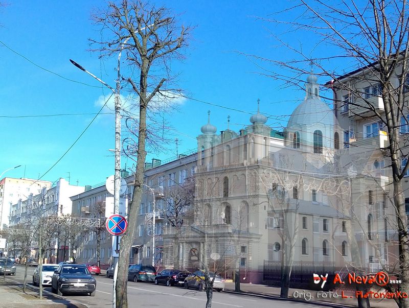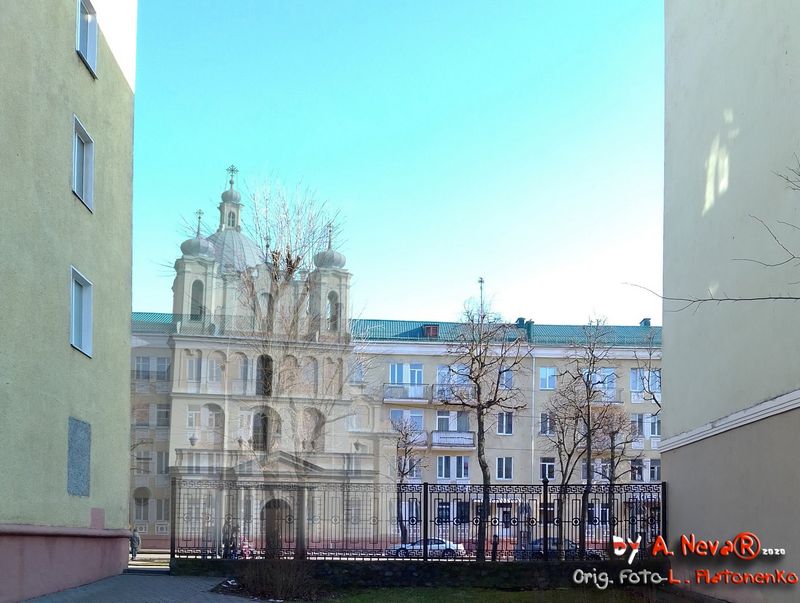 Магiлеў. Графiчная рэканструкцыя Богаяўленскай царквы Магілёўскага Богаяўленскага манастыра. Выгляд на пачатак XXст.