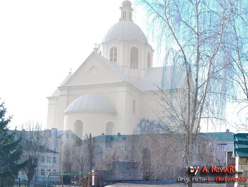 Цэнтральная нава, перакрыта цыліндрычнымі скляпеннямі з распалубкамі, аддзяляўся ад бакавых наваў з крыжовымі скляпеннямі 10 масіўнымі квадратнымі слупамі, на якія абапіраліся падпружныя аркі. Наяўнасць слупоў у пралёце трансепта сведчыць, што першапачаткова сяродкрыжжа не вылучалася канструкцыйна, а купал адсутнічаў. Трансепт - элемент каталіцкай базілікі - нагадваў бакавыя прыдзелы, завершаныя з усходу алтарнымі апсідамі. У паўночны прыдзел вёў асобны ўваход. Алтарная частка мела ўвогуле арыгінальнае вырашэнне.