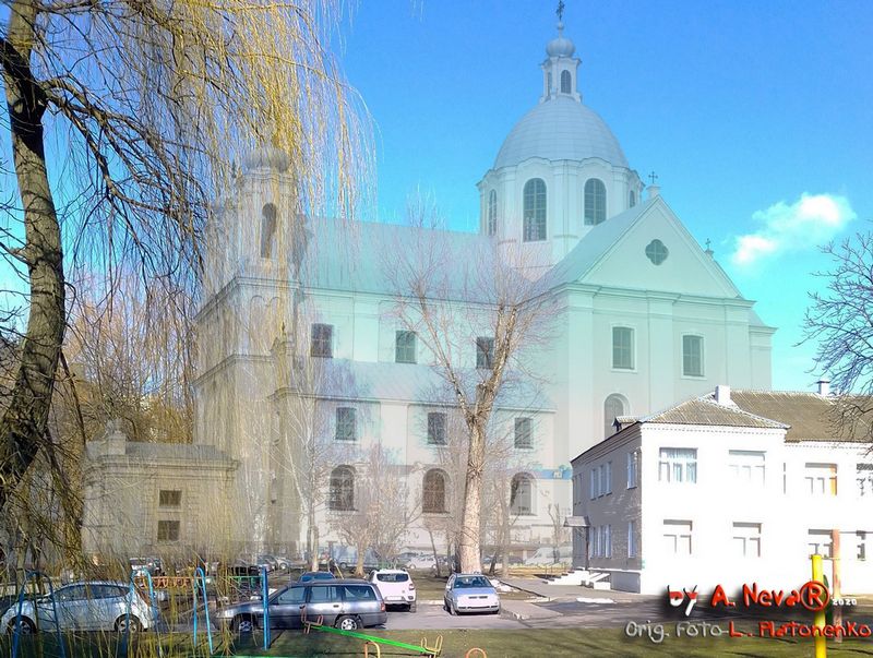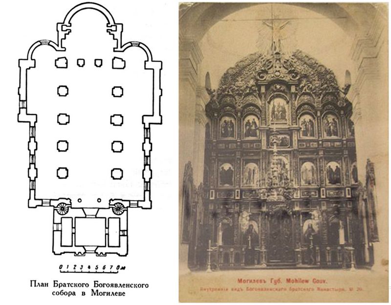 Будаўніцтва храма вялося арцеллю мясцовых майстроў пад кіраўніцтвам Варлама Палоўкі і Арсенія Азаровіча. У 1636 г. сабор асвяціў магілеўскі епіскап Сільвестр Косаў. У першай палове XVII ст. - гэта галоўны храм буйнейшага праваслаўнага цэнтра Беларусі. Але цікава, што ў архітэктуры збудавання ўжо праявіліся рысы ранняга барока - стылю, які быў прыўнесены ў беларускае манументальнае дойлідства каталіцкай контррэфармацыяй. Надзвычайная выразнасць, экспрэсія, хараство архітэктурных форм гэтага стылю арганічна ўспрыняліся праваслаўным культавым будаўніцтвам, але ў самабытнай трактоўцы.