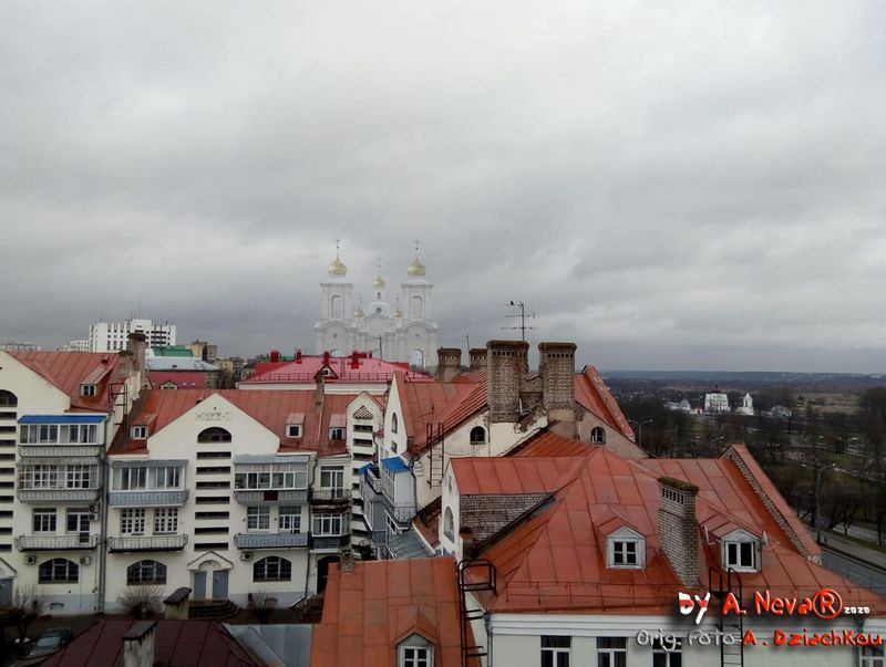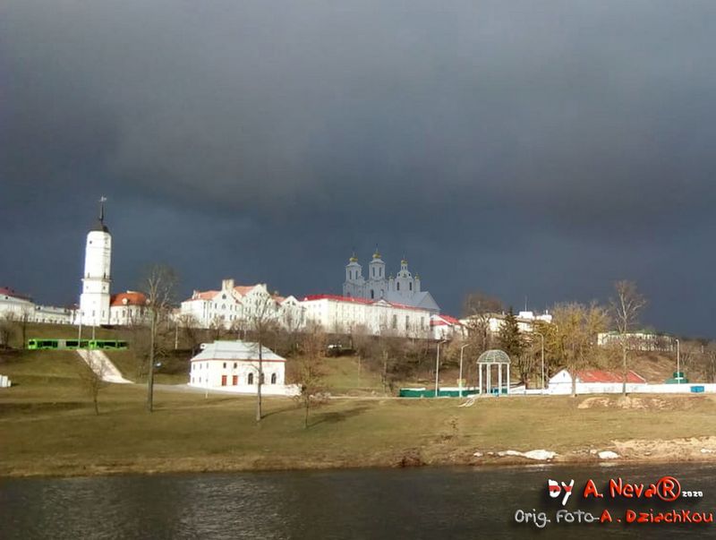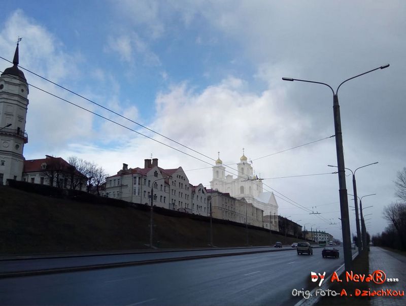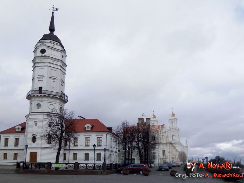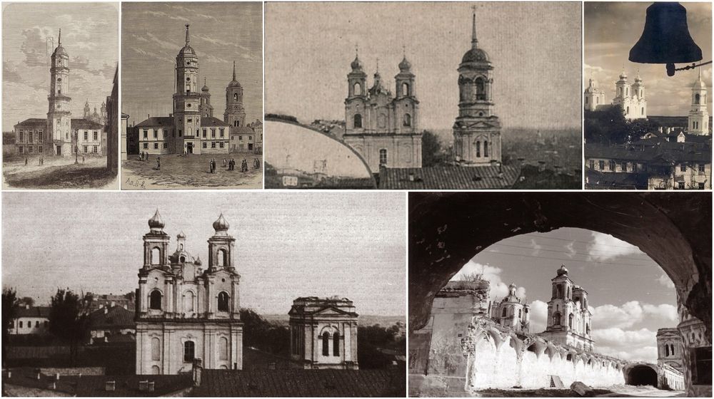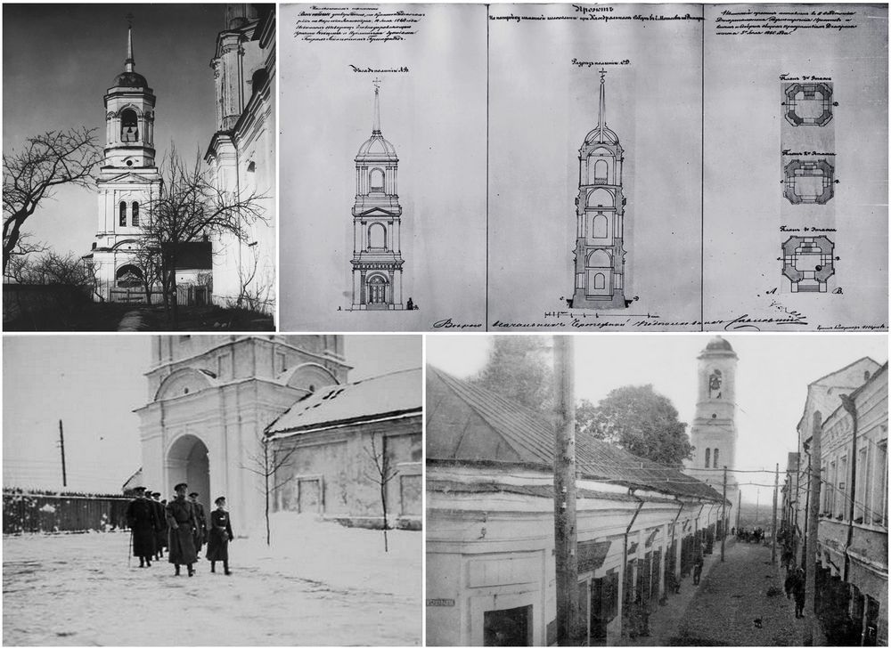 Мураваная званіца пры Спаскім саборы ўзведзена на месцы драўлянай у 1785 г. пры Г.Каніскім, які загадаў паставіць на ёй пазалочаны флюгер з выявай Архангела Гаўрыіла. У сярэдзіне XIX ст. старая званіца заменена новай капітальнай шмат'яруснай пабудовай эклектычнай архітэктуры, завершанай высокім шпілем. Яе верхнія ярусы былі разбураны ў першую сусветную вайну, што адлюстравана на фотаздымку пачатку XX ст. (Літ.: Тамара Габрусь - Храмы. Страчаная спадчына. Менск, Полымя, 1998. ISBN 985-07-0036-X, апублiкавана на сайце Radzima org)