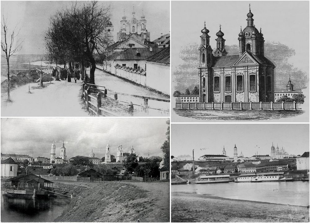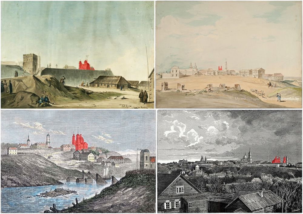 Магiлеў. Графiчная рэканструкцыя Спаса-Праабражэнскай царквы Магілёўскага Спаскага манастыра. Выгляд на пачатак XXст.