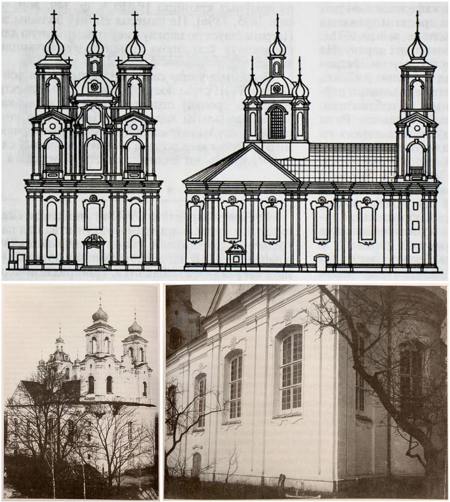 Роўная вышыня наваў, перакрытых скляпеннямі з распалубкамі, і невялікае сячэнне слупоў, раскрапаваных пілястрамі, рабілі ўваходную частку храма падобнай да залы. Яе прастору перад алтаром раптоўна прарываў высокі барабан купала, магутны і ўзнёслы, як харал. Можна ўявіць, якім багаццем светлаценевых эфектаў уражвала прыхажан чатырох'яруснае асвятленне падкупальнай прасторы!