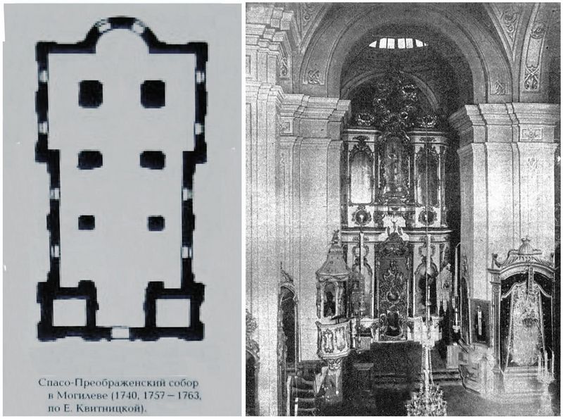 Падчас мацнейшага пажару Магілёва ў 1708 г., што ахапіў увесь горад, калі мэталёвыя лісты з купалоў "лёталі ў паветры, як ластаўкі", згарэла і Спаская царква. На яе месцы паставілі часовы, скалочаны з дошак храм на падпорках, які хістаўся ад ветру. У 1740 г. урачыста быў закладзены мураваны сабор, на будаўніцтва якога расейскі ўрад вылучыў у 1737 г. 1000 залатых рублёў. Будаўніцтвам яго кіравалі паслядоўна магілеўскія епіскапы Іосіф і Геранім Валчанскія. Апошняга пахавалі ў 1754 г. у алтары яшчэ не завершанага храма.