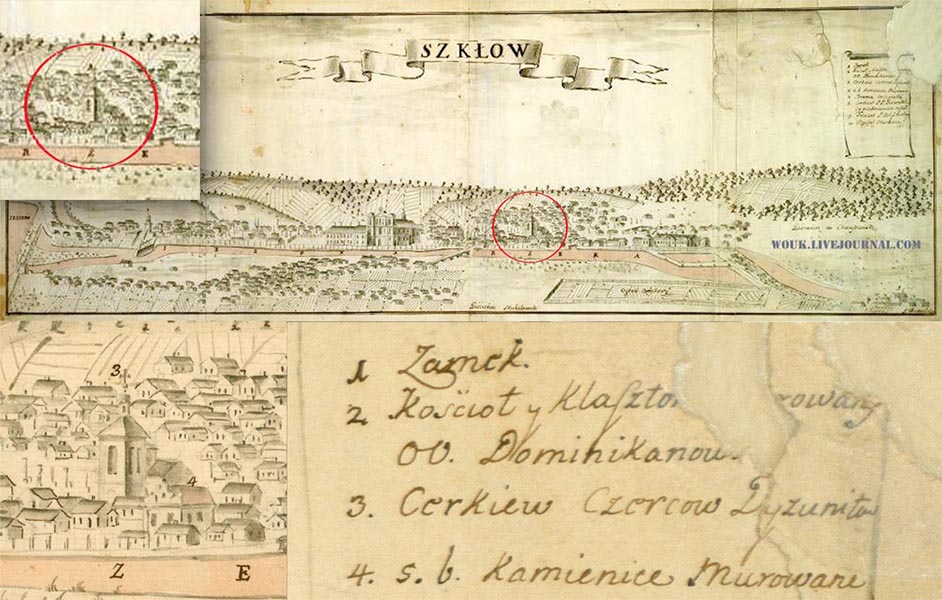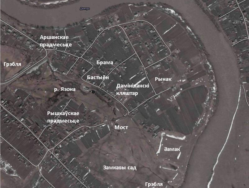 Белае пляма знiкла пасля таго, як у вёсцы Рыжкавічы археолагi знайшлi замчышча былога месца Шклоўскага, ля пабудаванага Хадкевiчамi замка. Драўляная Уваскрасенская царква доўгі час была галоўным шклоўскім храмам. Пасля пажару 1690 года "згарэла з усімі скарбамі, кнігамі, начыненнем, званамі, нічагусенькі не засталося..."