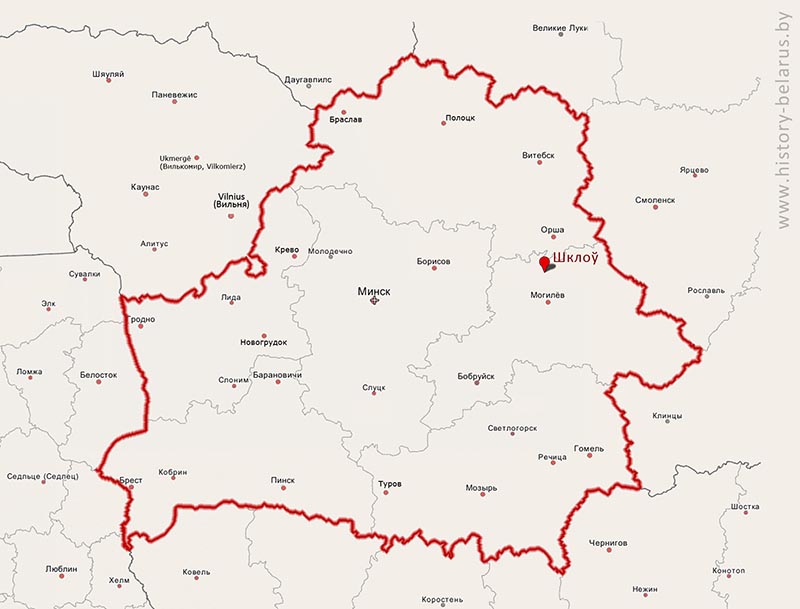 Шклоў — магдэбурскае месца гістарычнай Аршаншчыны, колішняя сталіца графства. Ян Караль Хадкевіч меў тытул "граф на Шклове і Мышы пан Віленскій".