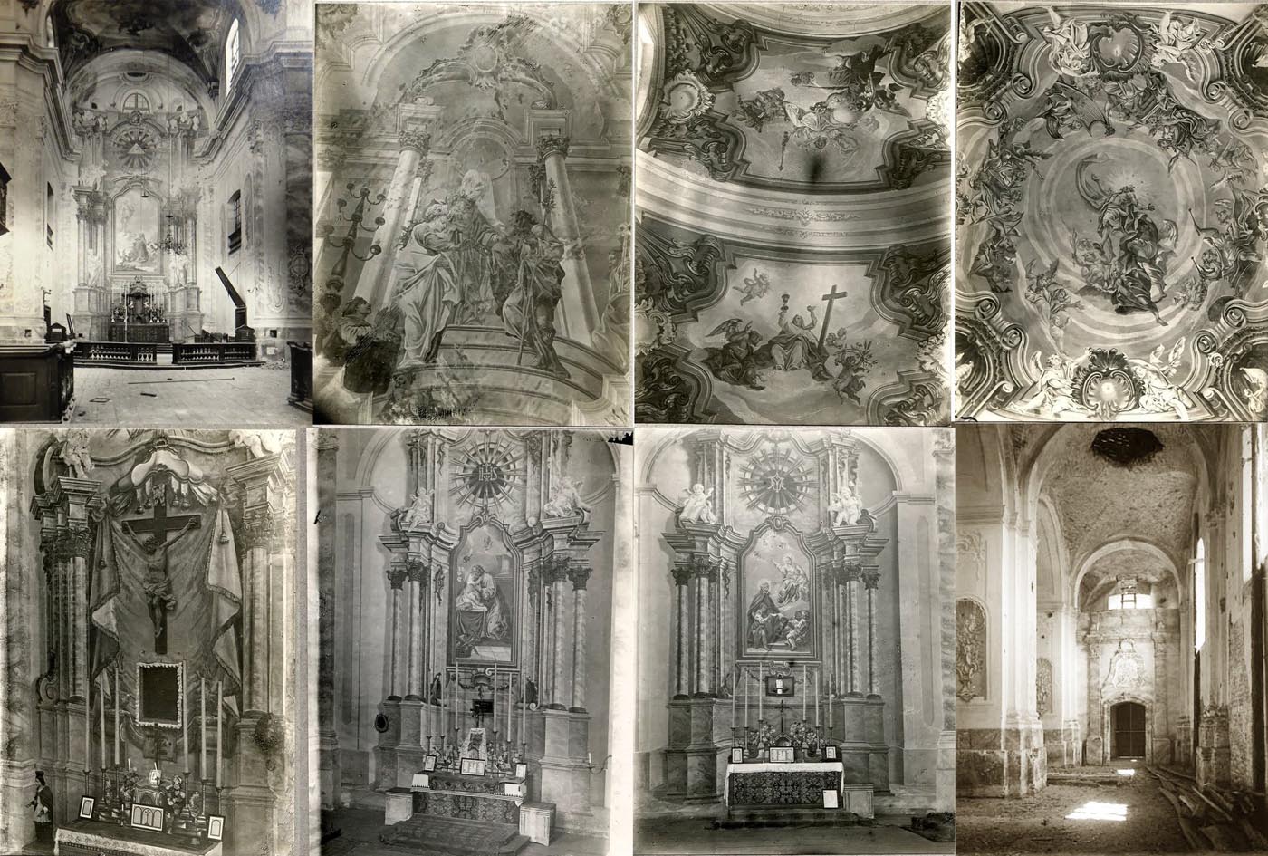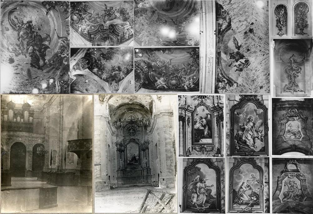 Таксама трэба ўзгадаць пра шматлiкiя роспiсы iнтэр'ераў касцёла. Пакінуў вышэй згаданы даследчык і памяць пра поўныя драматычнага выразу статуі маці Божай і святога Іосіфа, ацалелыя падчас бамбардзіроўкі касцёла без малейшых пашкоджанняў.
