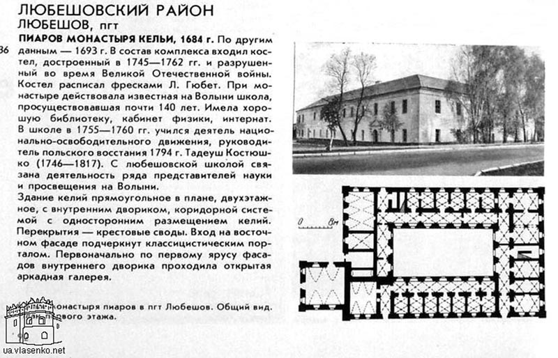 Любешыў, або Любяшоў (Валынская вобласць Украiны, былое магдэбургскае мястэчка гістарычнай Піншчыны) Графiчная рэканструкцыя касцёла Св. Яна Евангелiста кляштару пiяраў