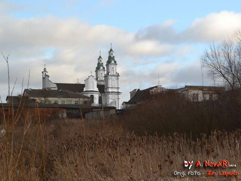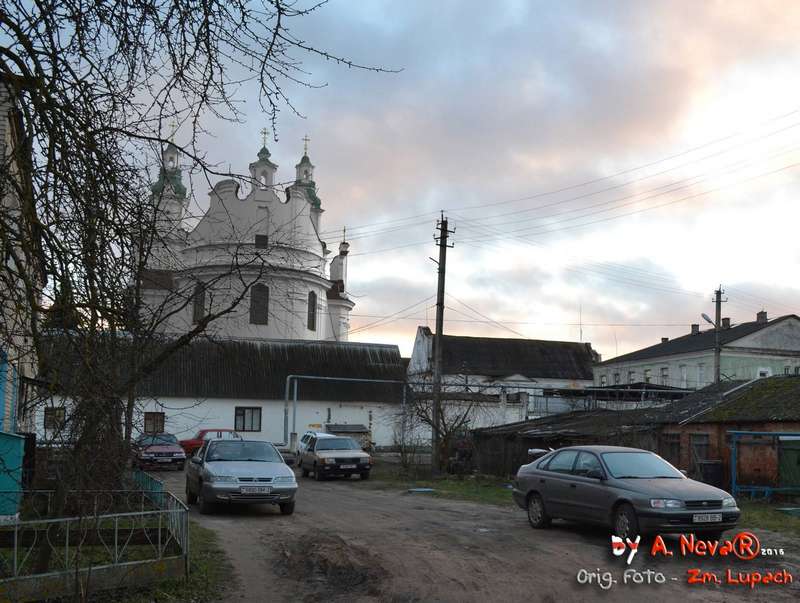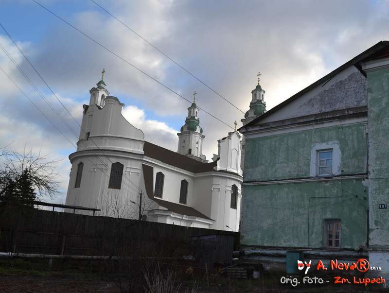 Разам са св. Сафіяй ў Полацку, адбудаванай уніятамі ў 1750 пасьля знішчэньня маскоўскім войскам за часам Паўночнай вайны 1700-1721 і бажніцай Апекі Маці Божай у Оршы, храм можа служыць трэцім прыкладам варыяцыі на тэму цэнтрычнага, крыжовага ў плане, трохнававага базыльянскага двухвежавага храма.