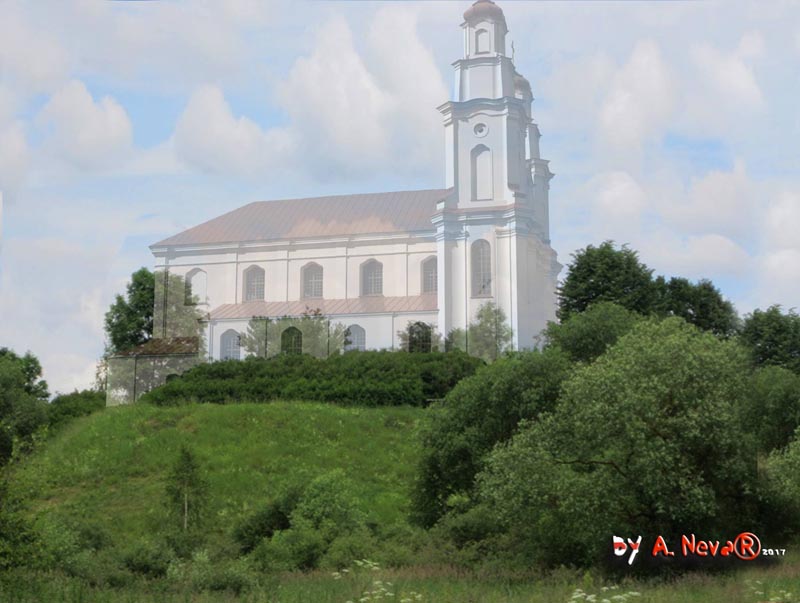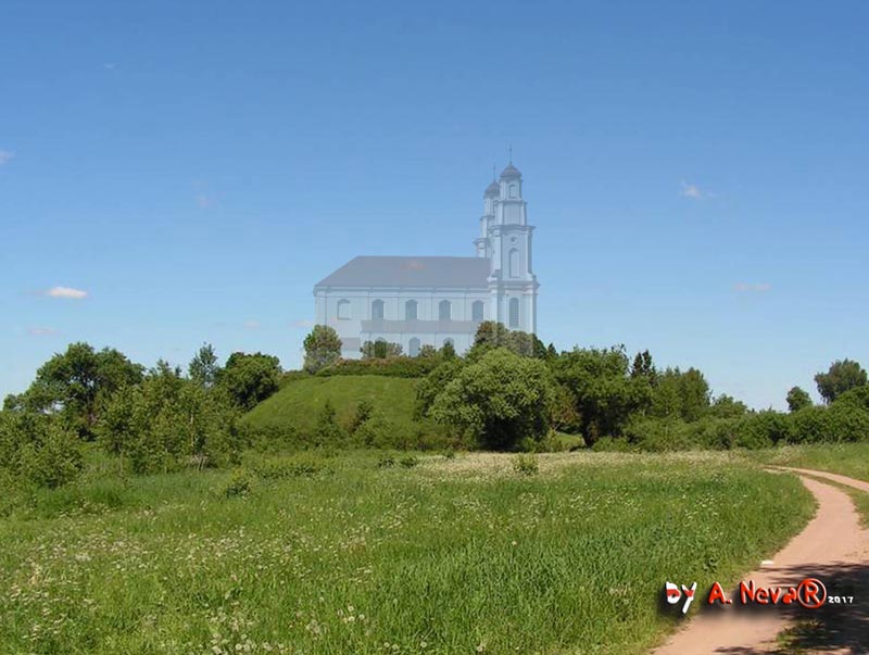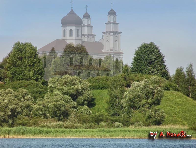 Тадулiн (Янавічы, Слабада) Графiчная рэканструкцыя Успенскай царквы былога базылiянскага кляштара (пазней праваслаўнага).