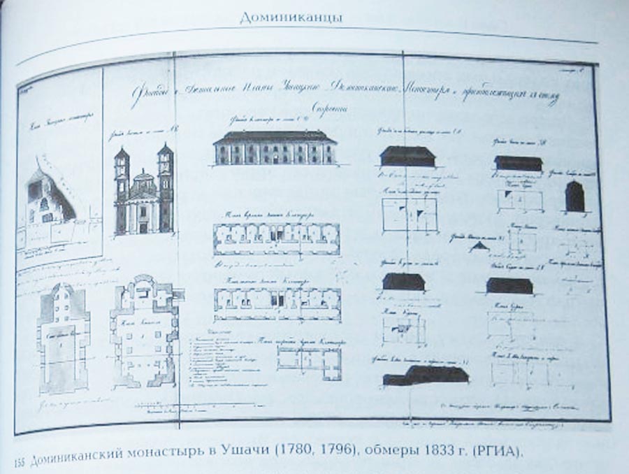 Дамiнiканцаў прывеў ва Ушачы падваевода полацкi Геранiм Жаба разам са сваёй жонкай Кацярынай. На момант атрымання мястэчкам Магдэбургскага права (23.06.1758г.), комплекс складалi ўжо двухпавярховы кляштарны будынак, бровар, лазня, 6-цi класная вучэльня (дзеяла да 1839г. — да скасаваньня Берасьцейскай царкоўнай уніі)