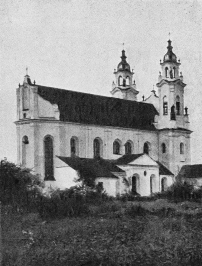 Касцёл створаны па заказу абата Рэгінальда Ленартовіча. Будаўніцтва распачатае майстрам Лаўбэ ў 1749 г. пад кіраўніцтвам аўтара праекту архітэктара Яна Глаўбіца*. У 1756 годзе касцёл асвечаны, у 1764—1766 гадах надбудаваныя вежы; у 1756—1759 гг. узведзены двухпавярховы корпус кляштара. Пры кляштары ўтварыўся адзін з першых ва Усходняй Еўропе школьны тэатар.