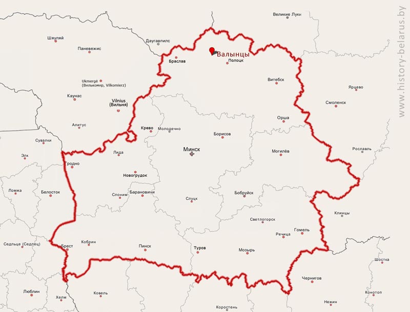 Валынцы (Забелы) Верхнядзвінскага раёну. Графiчная рэканструкцыя касцёла Святога Юр’я былога дамiнiканскага кляштара. Упершыню Валынцы згадваюцца ў пачатку XVII ст., калі кароль і вялікі князь Стэфан Баторы перадаў паселішча Полацкаму езуіцкаму калегіуму з мэтай заснавання тут духоўнай семінарыі. Мясцовасць уваходзіла ў склад Полацкага ваяводства.