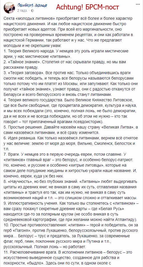 Искусственное противопоставление "литвины-белорусы" порождает у БРСМ-идеологов когнитивный диссонас. Очень хочется возить экскурсии в Несвиж