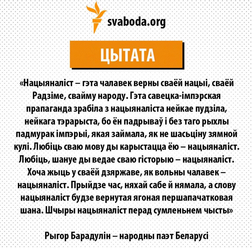 В спорах часто слышу упрек в том, что националист видит национальную общность как белорусскоязычную. Это не так. Психически здоровый националист воспринимает национальную общность как сообщество сознательных белорусов, но в этом сообществе видит важным наличие белорусского языкового компонента.