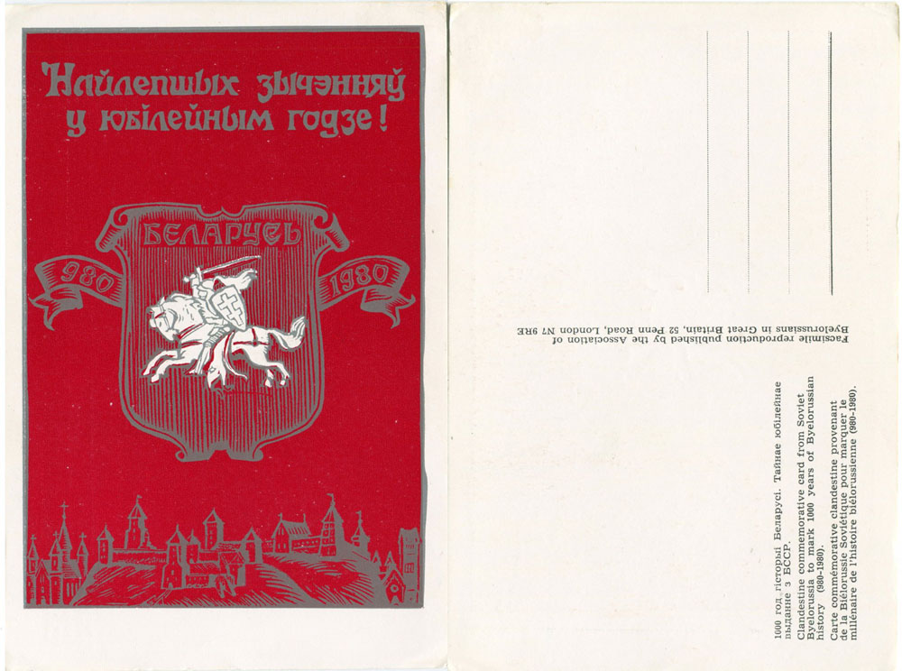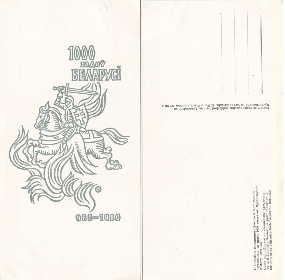 Погоне-91 предшествовали шикарные открытки 80-го года "980-1980 Тайнае юбілейнае выданьне з БССР" Фото из собрания Ales Jaras