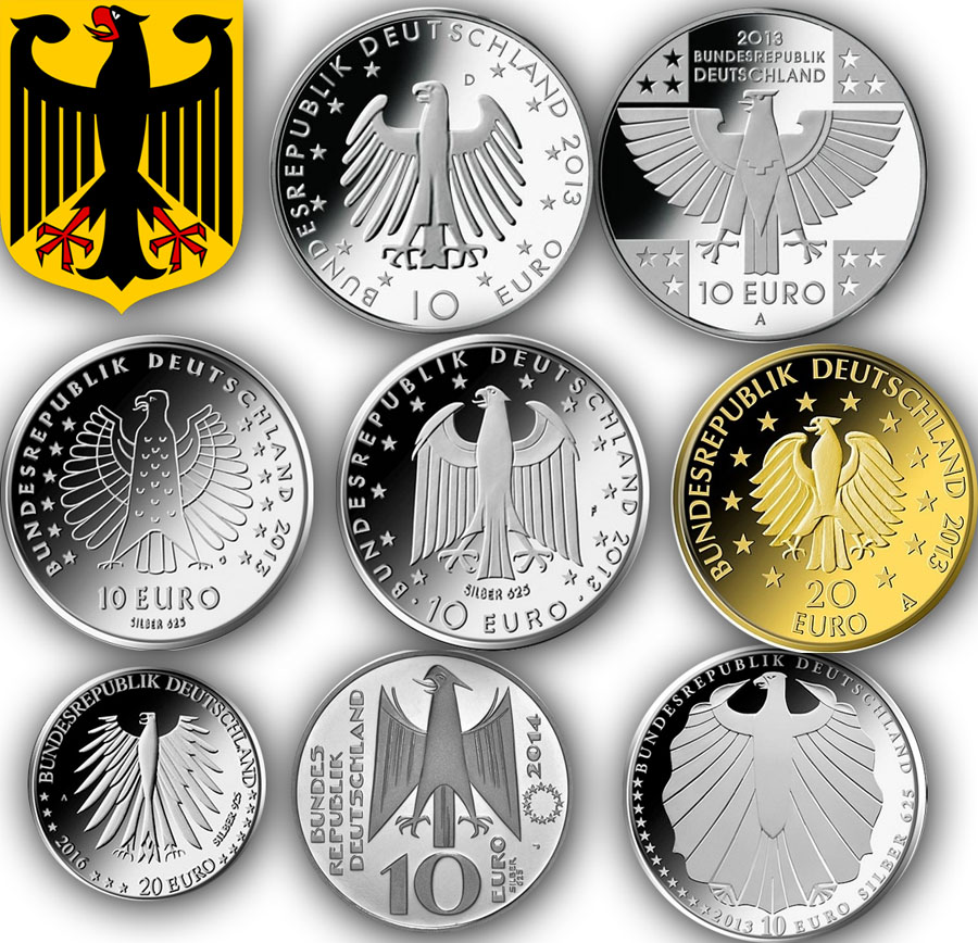 Шикарный пример работы с "эталонным гербом" дают немцы. Их орел известен с XI века и его эталон был утвержден в 1950.