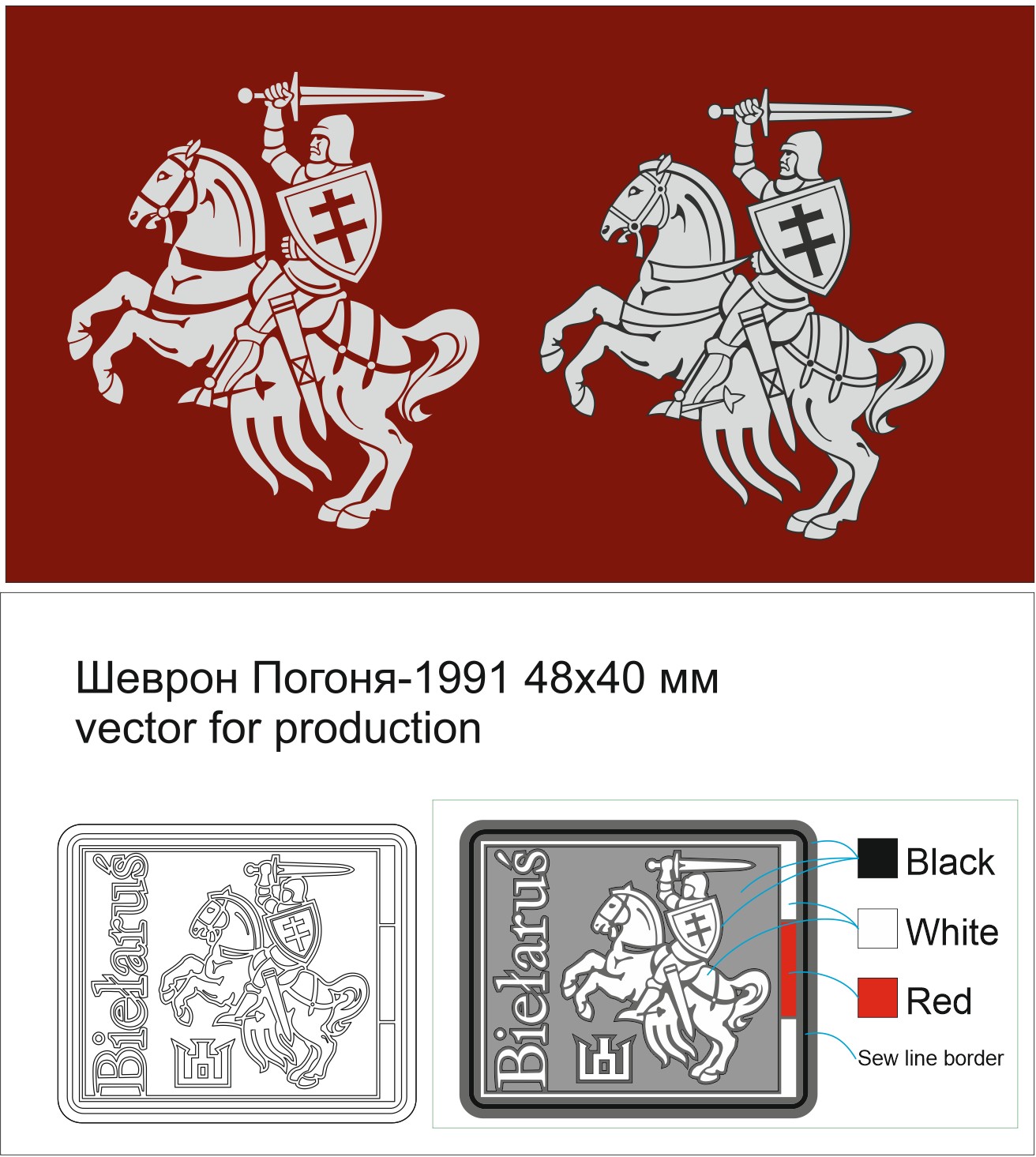 Нашивка Погоня-91. Пристойно выглядит на рюкзаке или рукаве. Размер 40 х 48 х 3 mm. Файл (дбайна адрысаваны ручкамі)) выкладзен для вольнага распаўсюда і карыстаньня без услякіх абмежаваньняў.