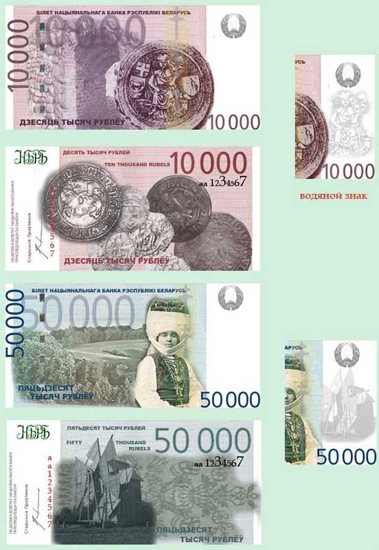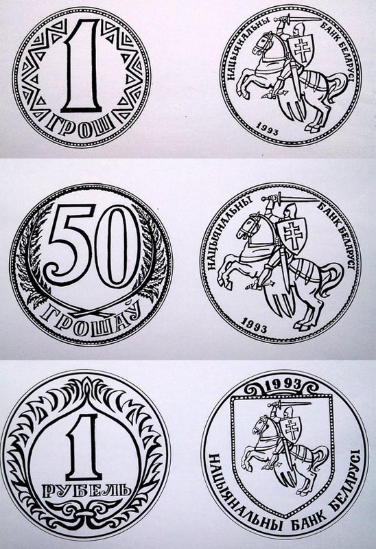 При всем многообразии существовавших вариантов дизайна белорусских денег 1993-2011 годов, Погоня на монетах была предложена (но так и не реализована) лишь единожды.