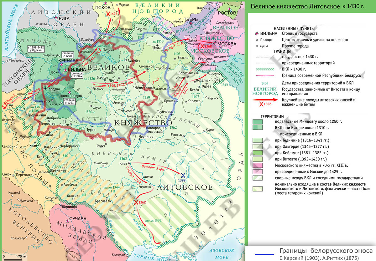 Иногда картинка стоит тысячи слов. Достаточно сравнить эти две карты: этно карту белорусского племени и карту ВКЛ — и сразу сказки про МиновгАУСа и русских царей-освободителей станут глупыми и неуместными. И, может быть, захочется узнать — что происходило на этих землях, кто жил и умирал на них и за них. Узнать, что значат или значили незнакомые слова. Прикоснуться к памяти места.